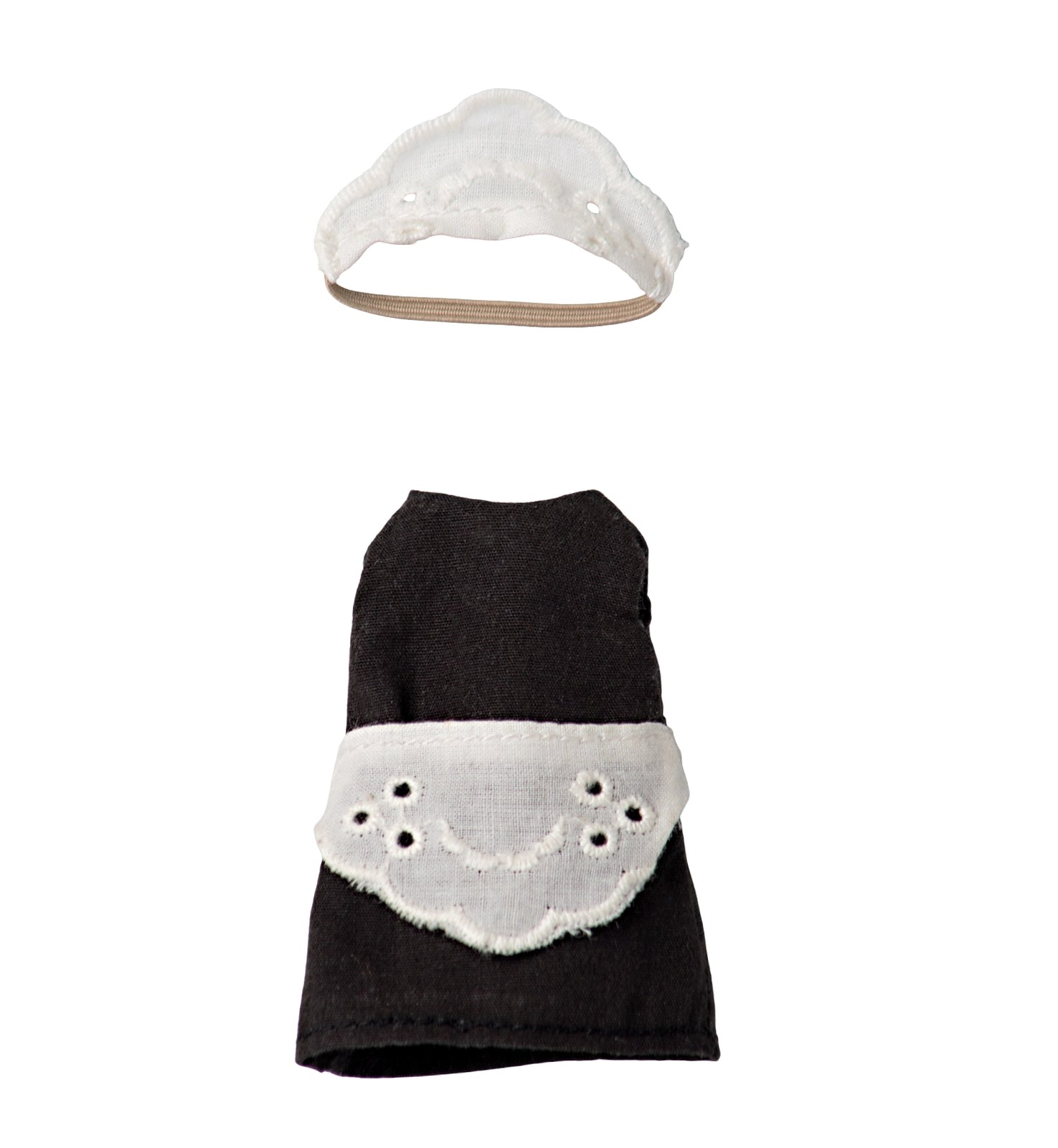 A classic set of maid clothes including a dress with apron and a headband. This set fits the big brother and sister mouse perfectly.