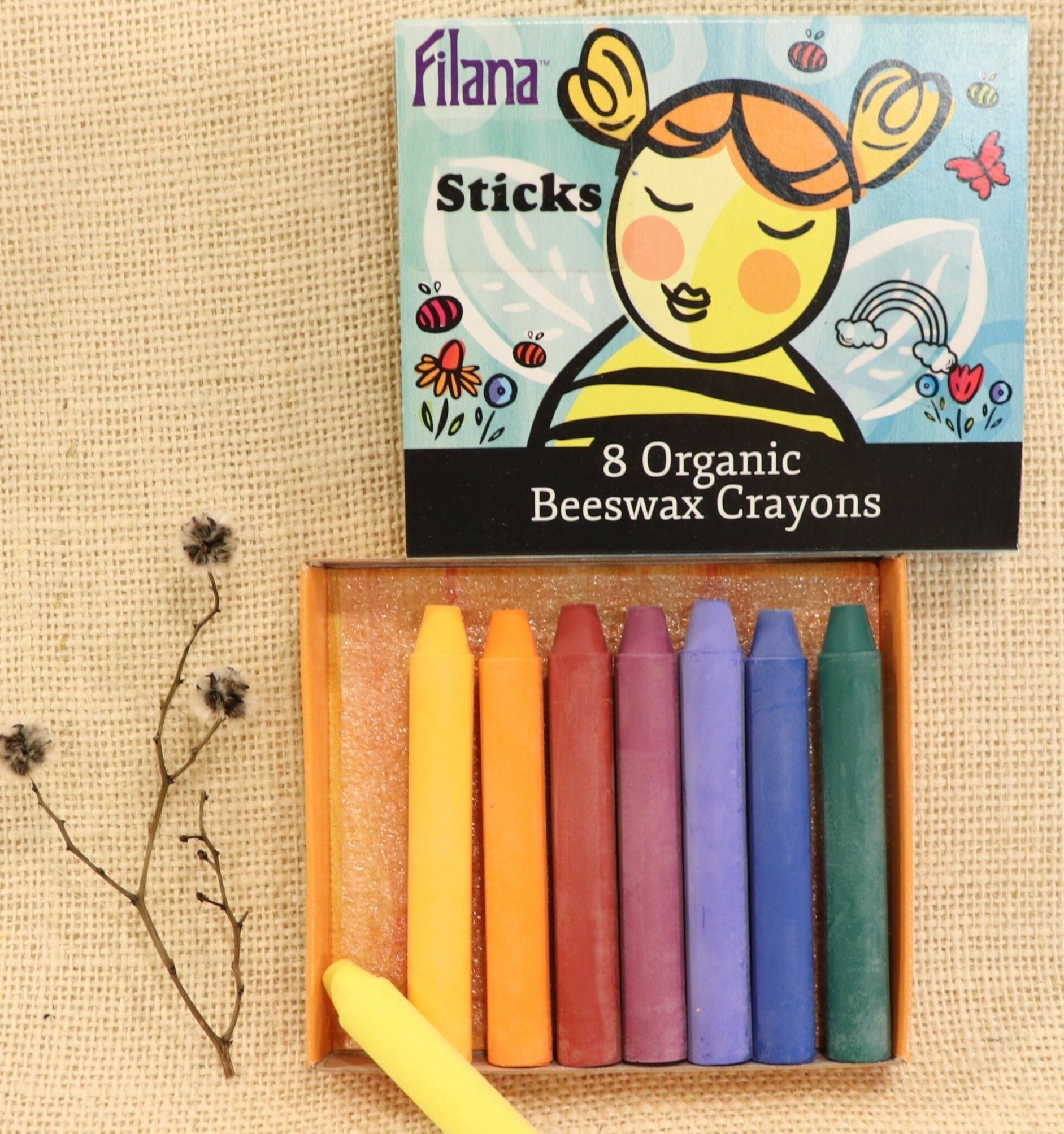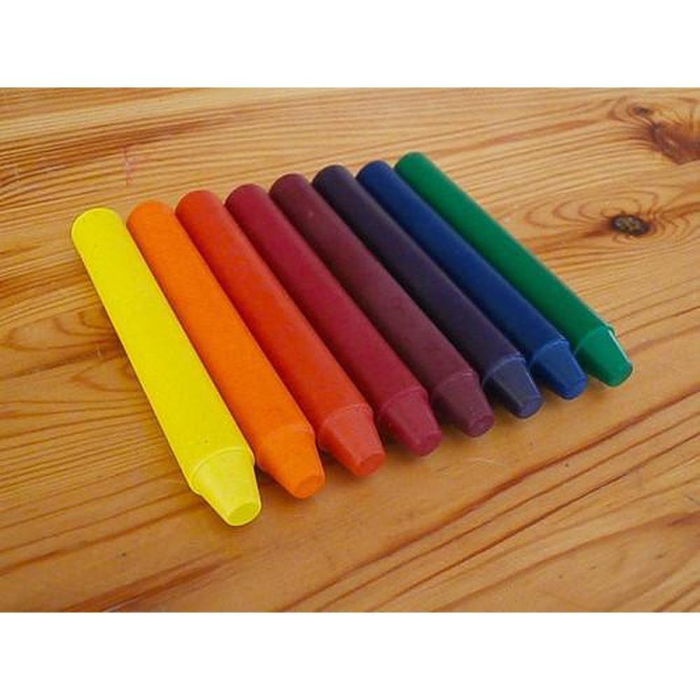 Each crayon is 1/2" diameter, 3 3/8" length. Packed in a colorful slider box made from recycled paper.