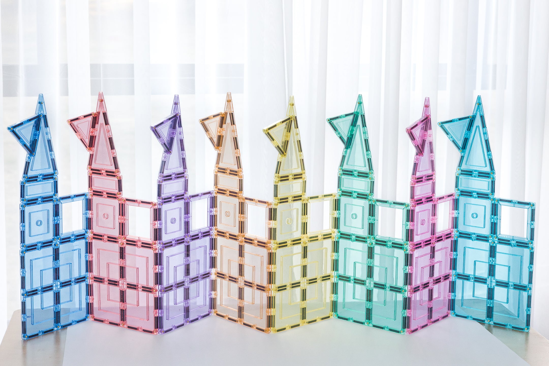 Our Magnetic Tiles – Pastel Builders Pack (112 Piece) set includes: