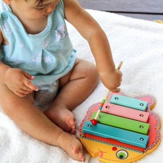 Designed in the shape of a fish, this Animambo xylophone features four keys, making it the perfect instrument to introduce your young child to music.