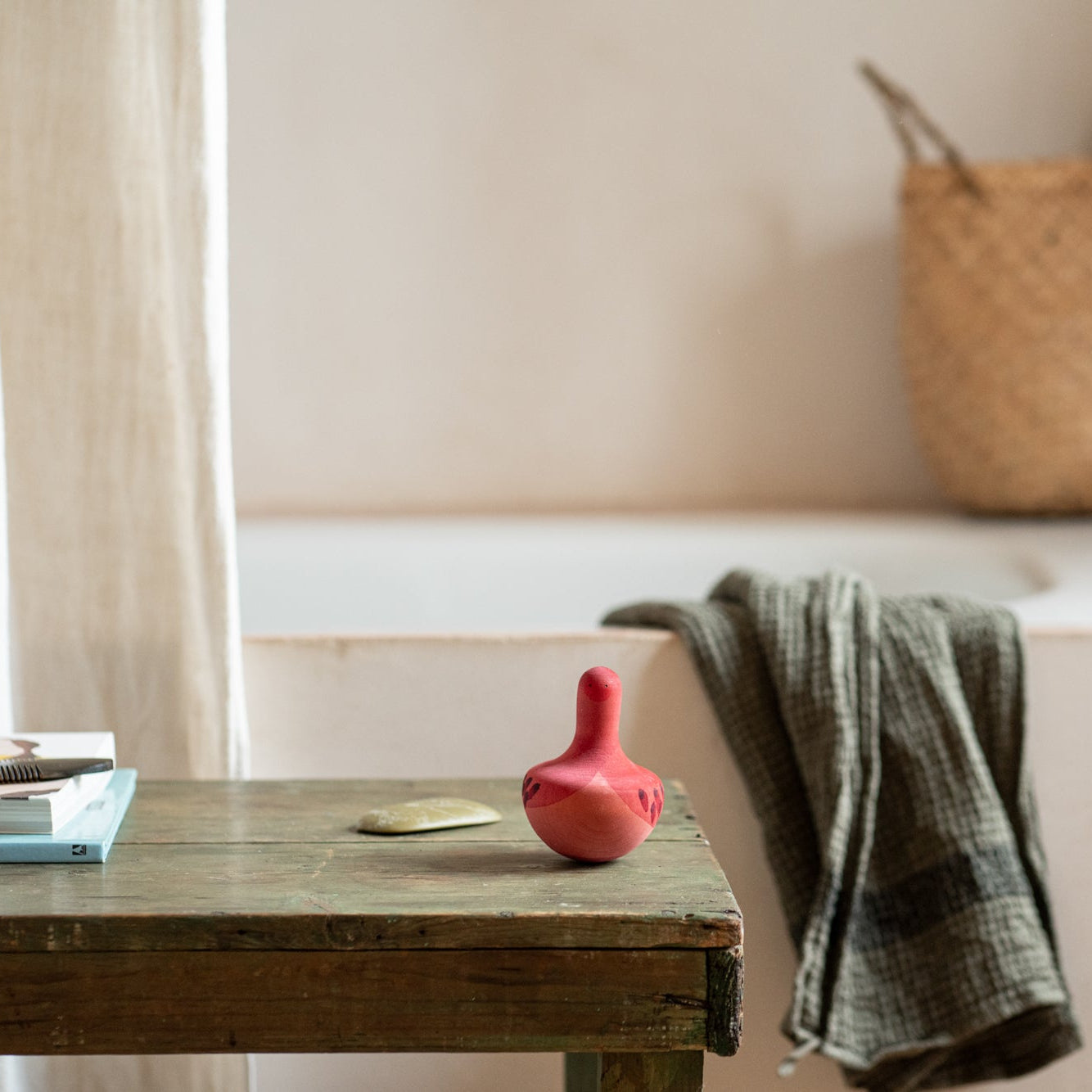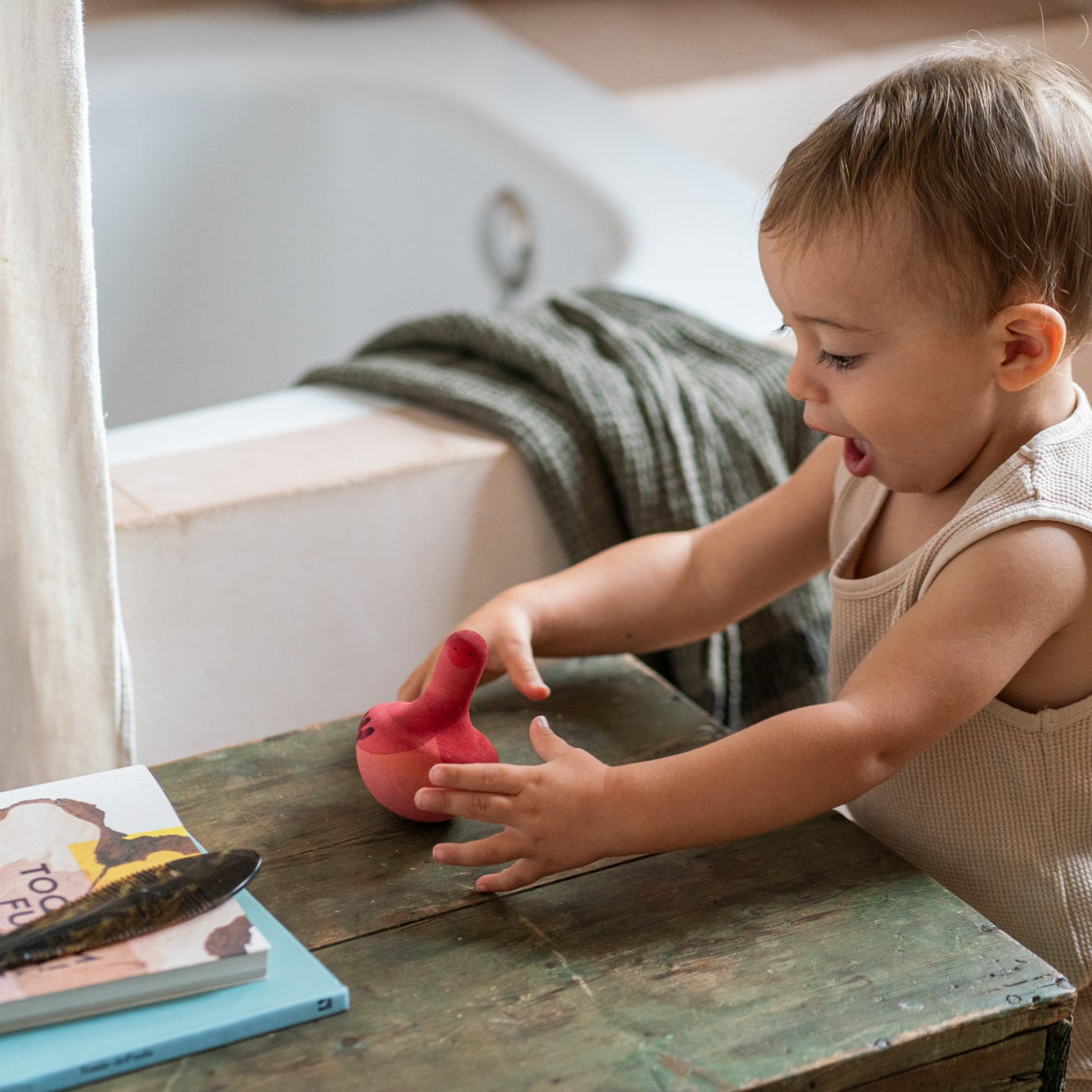 With its stunning pink feathers and bright, playful wings, this little flier is ready to spin and roll.