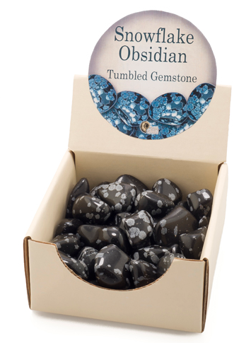 Snowflake Obsidian tumbledSnowflake Obsidian gets its name from the spherulites which occur naturally on obsidian.