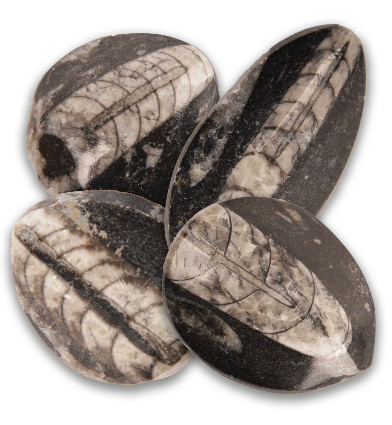Nautiloids - This species of nautiloids (orthoceras - meaning straight horn) come from Morocco and have fossilised in black limestone creating a stunning effect. These fossils belong to an ancient extinct species of molluscs.