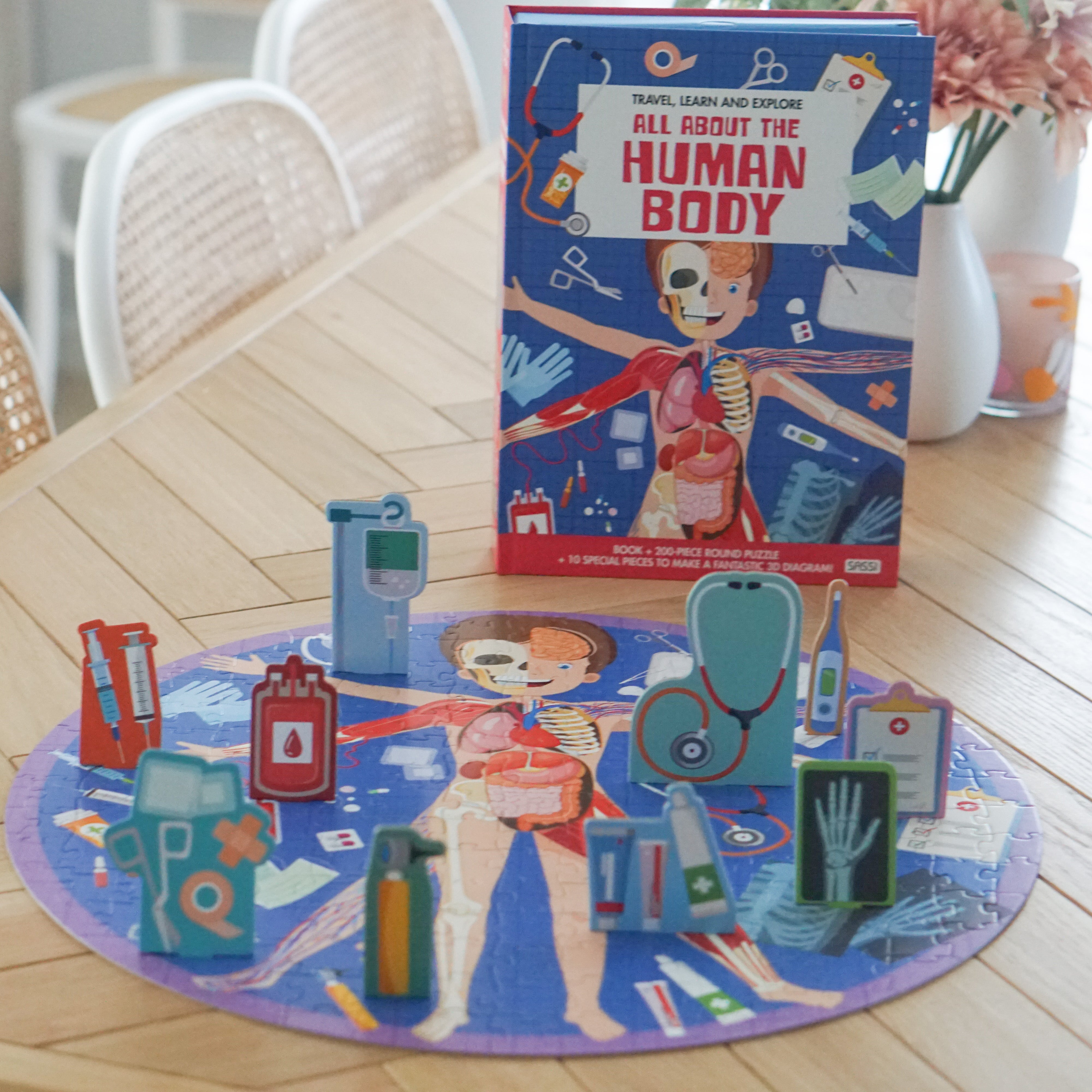 Put together the detailed puzzle and read the book to learn all about the life cycle and the human body!