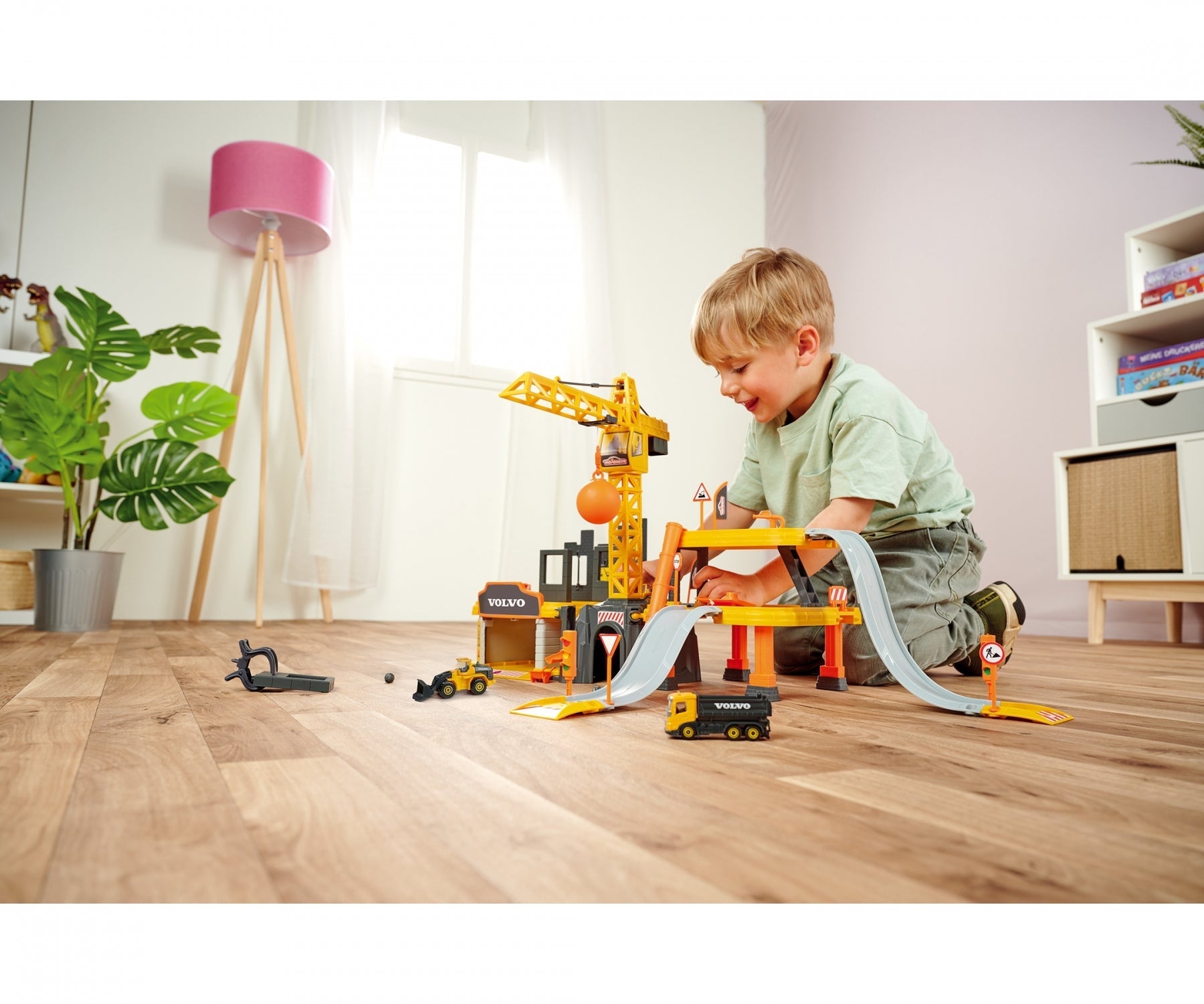 Rotating windows provide a vantage point from which to observe the building site. Once you’re ready to get to work, you’ll find a 360° rotating crane with a crane arm and claw for moving construction materials around the building site. The crane also has a wrecking ball for demolishing walls. In addition, the set includes a rubble chute for transporting debris, as well as warning signs, cones and everything else that you need to create your own toy construction site.