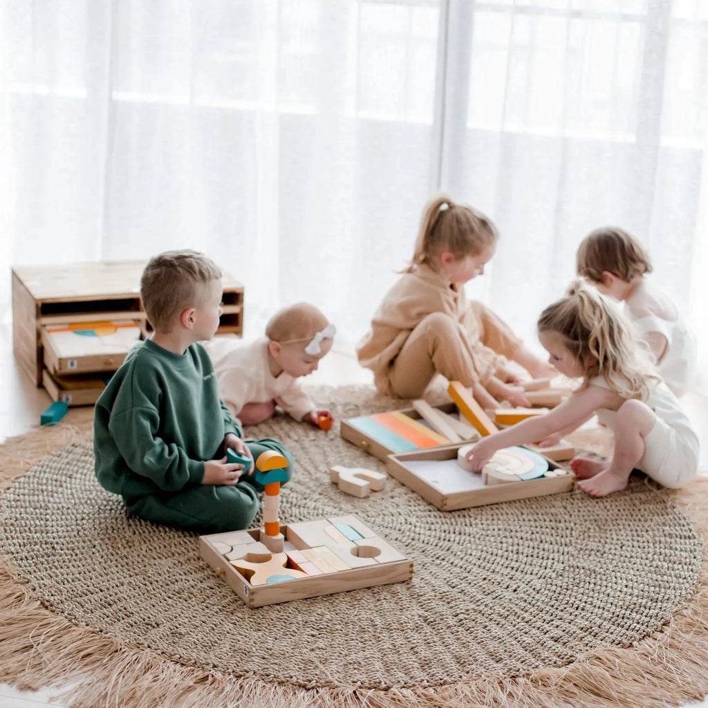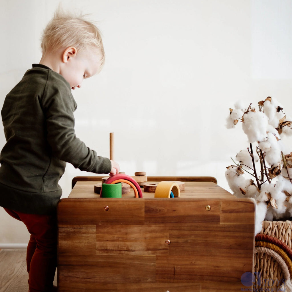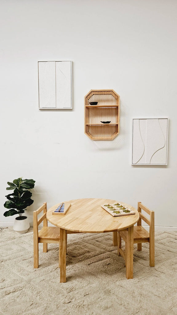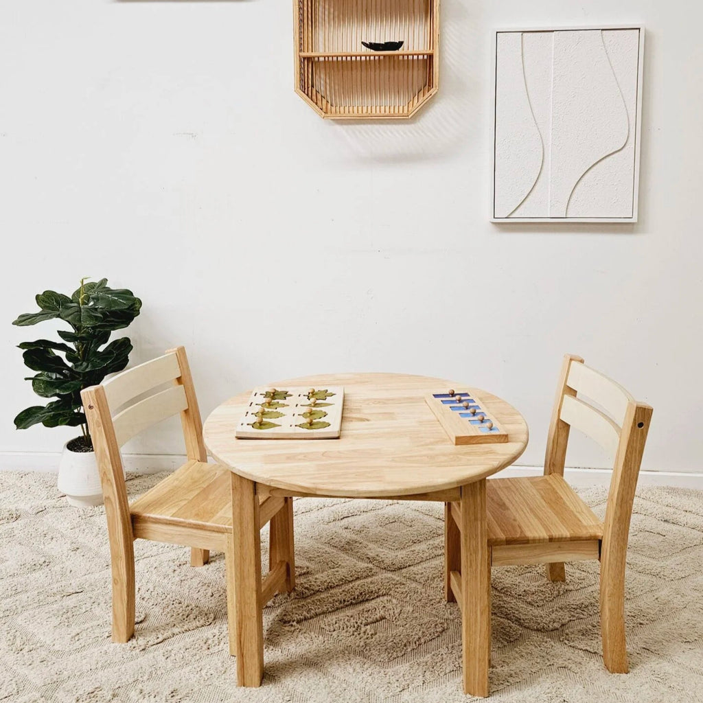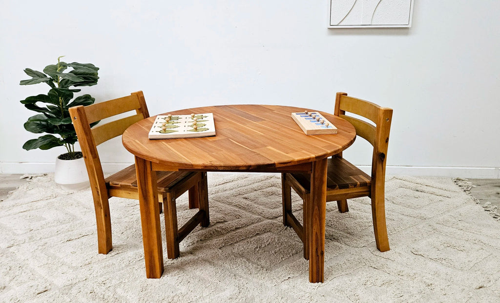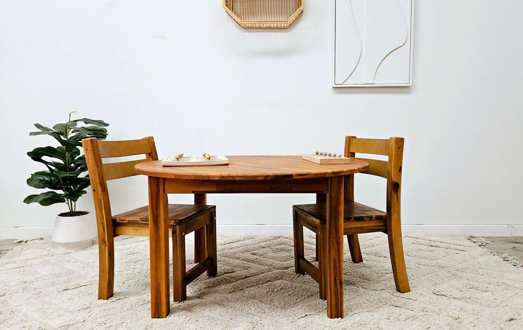 QToys - Acacia Large Round Table with 2 Stacking Chairs