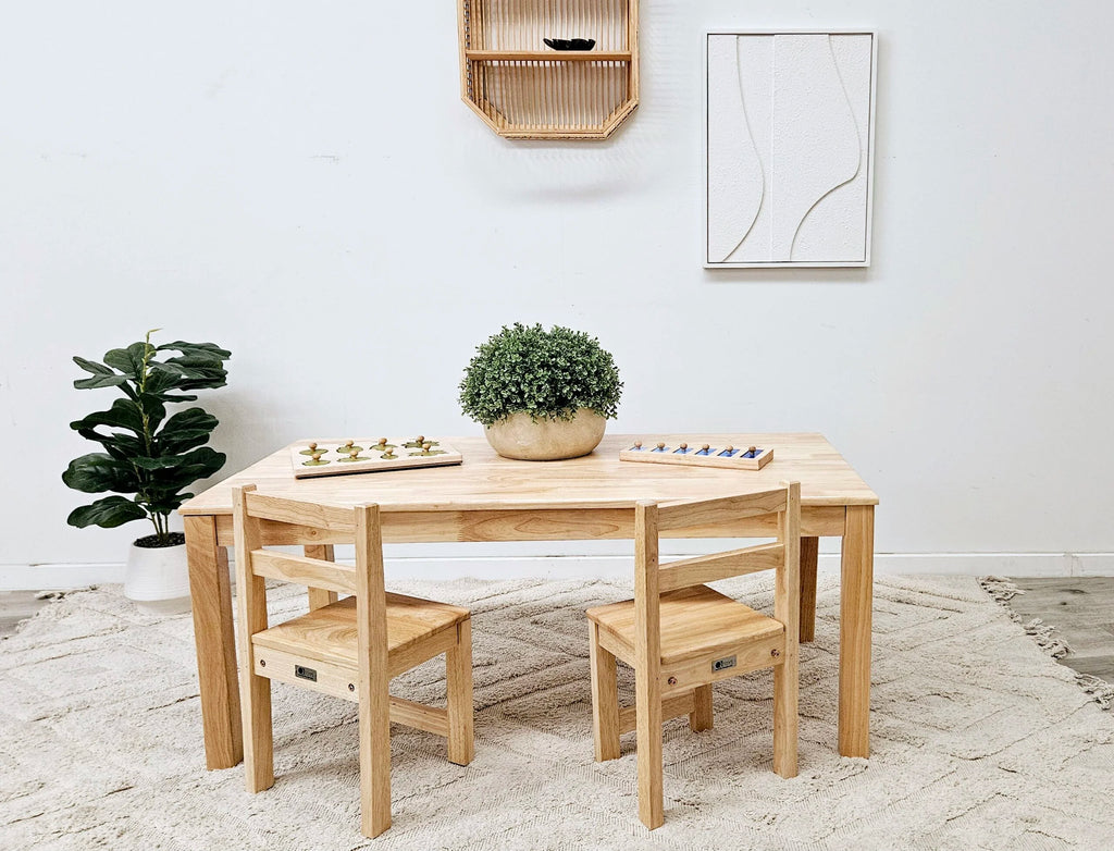 QToys - Solid Rectangular Table with 2 Standard Chairs
