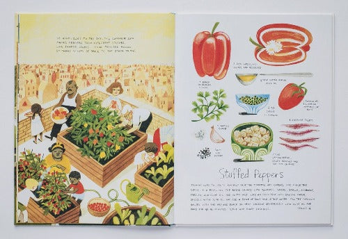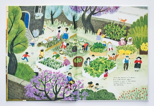 From Felicita Sala, the creator of bestselling Lunch at 10 Pomegranate Street, comes this exquisite sequel. In each garden, someone is tending to their produce. Maria's picking asparagus, Ramon's mum is watering the cucumbers, and a gaggle of kids are eating cherries fresh from the tree and even wearing some as earrings! Meet the many people of Fleurville, delight in their produce, learn their recipes, and find comfort in the cycle of the seasons. A Year in Fleurville is a cookbook, a mini guide to gardening, and a picture book rolled into one, celebrating the joys of coming together and sharing the rich rewards of our gardens and kitchens.