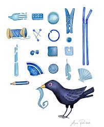 I am a collector. Always looking, finding ... and keeping! Bowerbird loves blue. Magnificent cobalt. Brilliant, vibrant blue! But something is missing. What could it be?