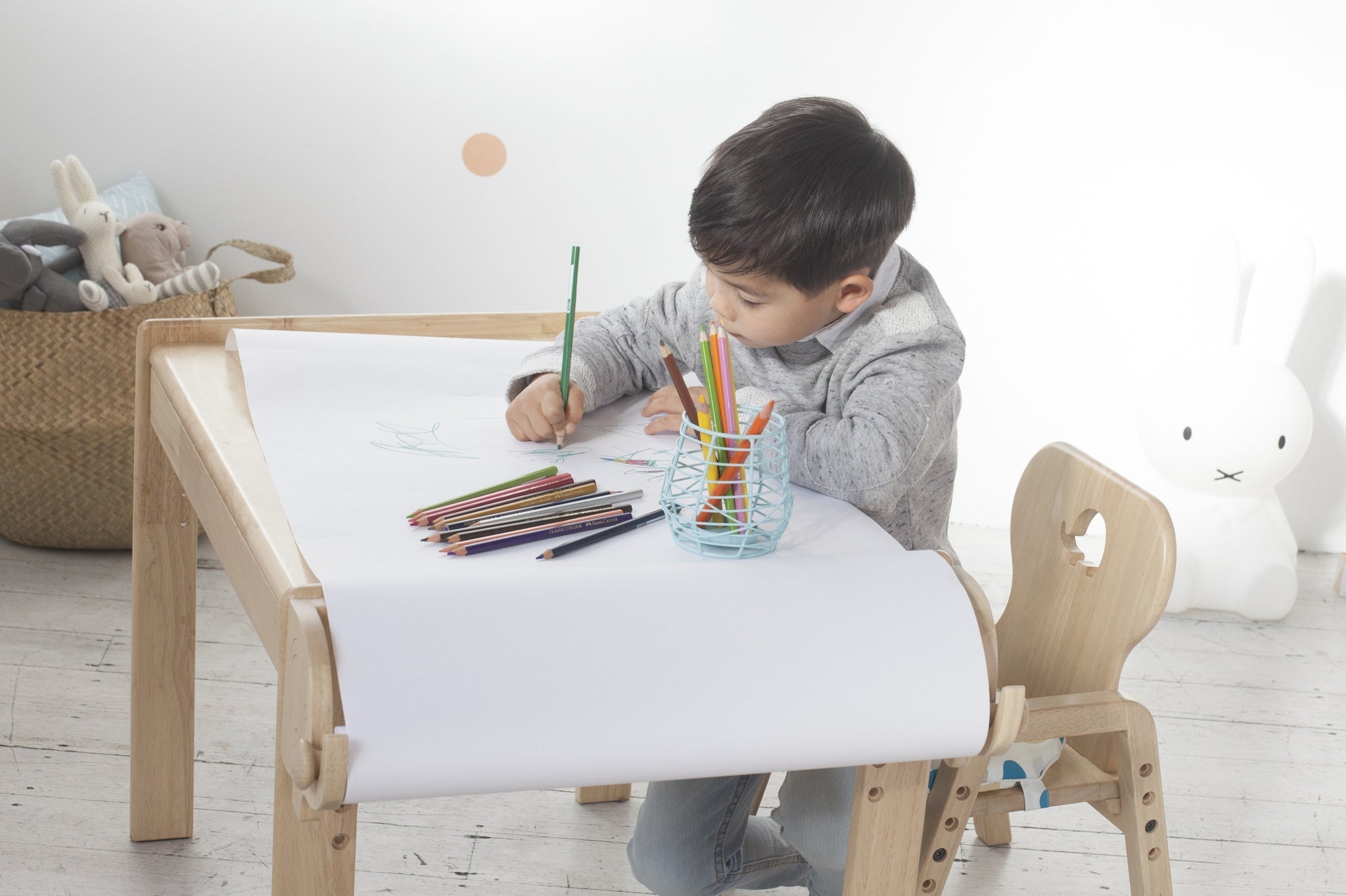 This appealing solid wood paper roll dispenser, complete with a shaft, is designed for easy yet robust attachment to the side of your MesaSilla table. Allow your aspiring artist to roll out nearly endless surface for drawing and painting, alone or with siblings and friends.