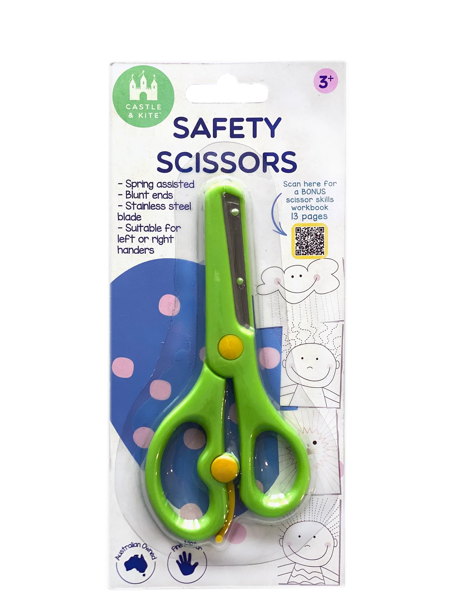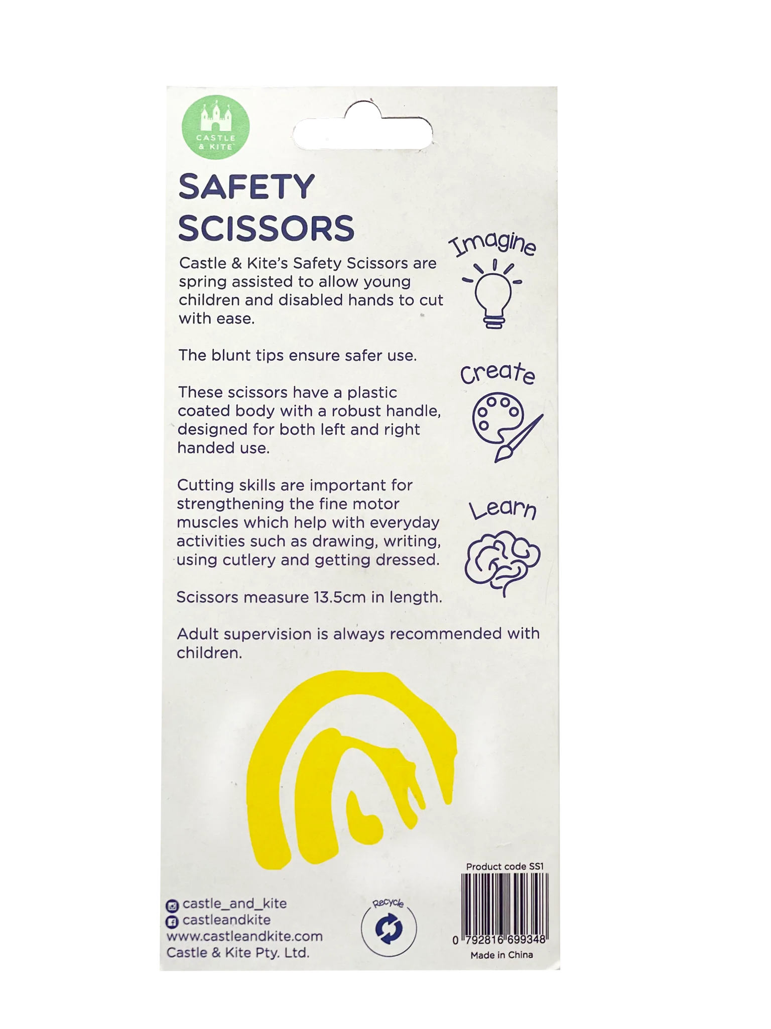 Castle and kite safety scissors spring assisted to allow young children and disabled hands to cut with ease.