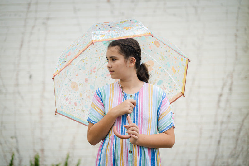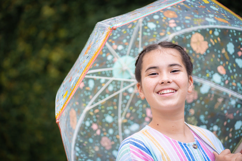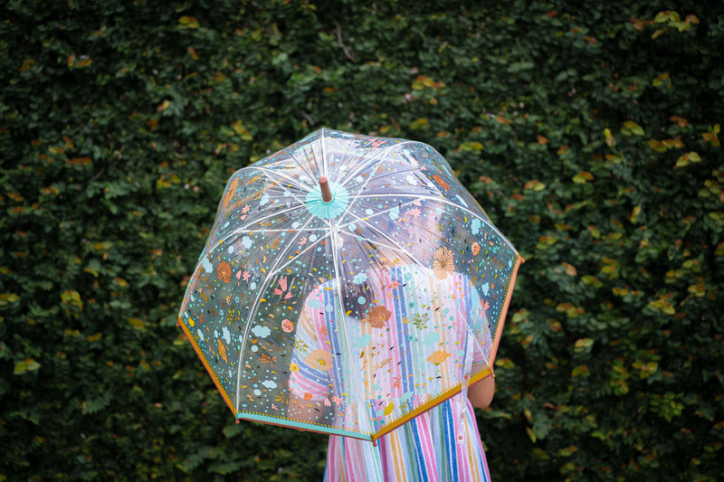 Beautifully illustrated adult-sized umbrella to brighten a rainy day. Transparent PVC allows you to see where you are going and the high dome provides better coverage.