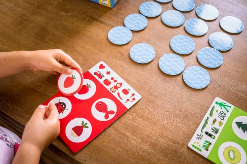 An educational and fun game to assist in building colour skills. A contemporary, beautifully illustrated bingo matching game; can you match the 4 objects on your board with the cards you turn over?