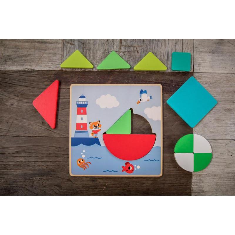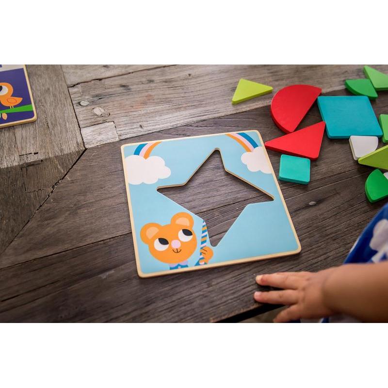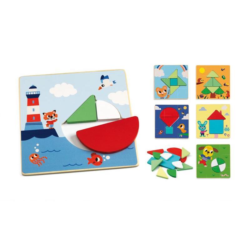 Recreate the picture scenes with the different coloured wooden shapes. The set comes with 6 different illustrations to finish and 12 wooden pieces. Great for building fine motor skills, shape recognition and colour recognition.