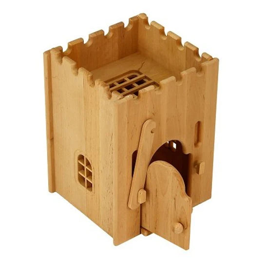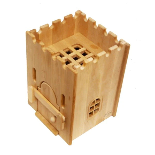 The Castle guardsman will enjoy protecting this secure facility, it features cell windows, a sky grill no prisoner could escape and a grill behind the prison gate that can be raised using a large wooden knob on the side of the prison. A third layer of security can be applied with the gate bar for total lock down. The Big Prison has a natural oil finish applied to the wood.