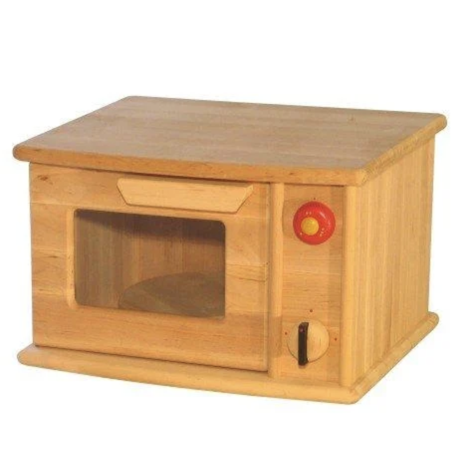 This sturdy wooden toy microwave oven from Drewart Wooden Toys, has a rotating plate and movable knobs. It makes a perfect little cooker for a home corner or an addition to your child’s kitchen play.