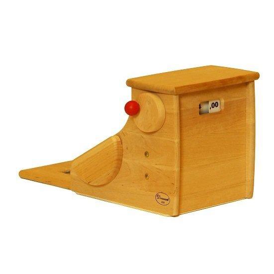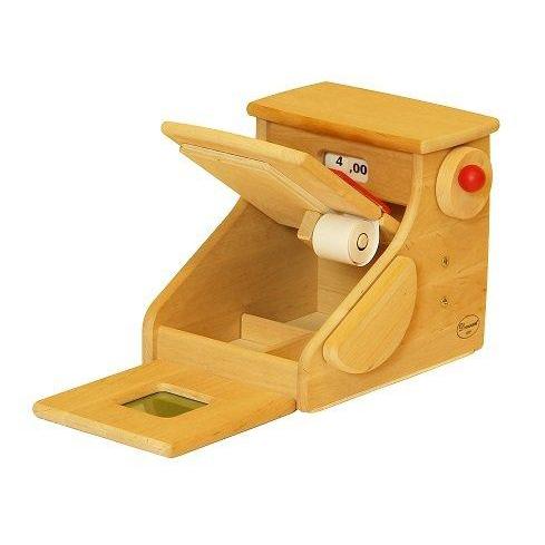 Children will enjoy imaginary shop play with this natural wooden toy cash register from Drewart Wooden Toys.  With a bell which sounds when the cash register lid is lifted, compartments for play money, push buttons, a card swipe facility, a separate front panel for scanning toy food, a paper roll for giving receipts (replaceable), and a register screen with rotating numbers, this toy cash register has plenty for little hands to do.  Of course, like the best toys, it is all up to the child's imagination - the cash register does not do any calculations for them.