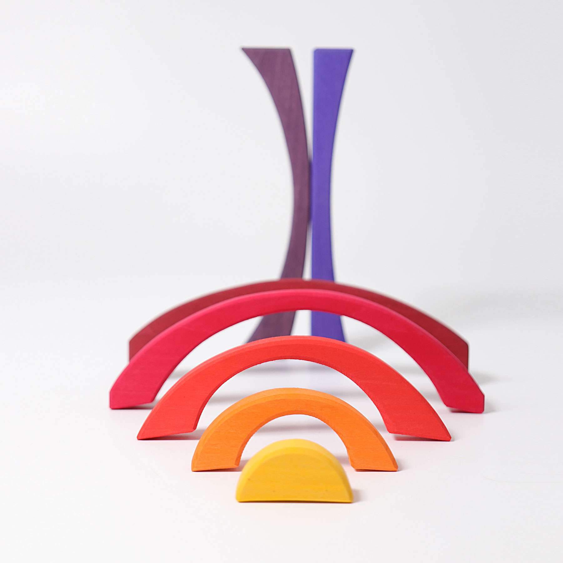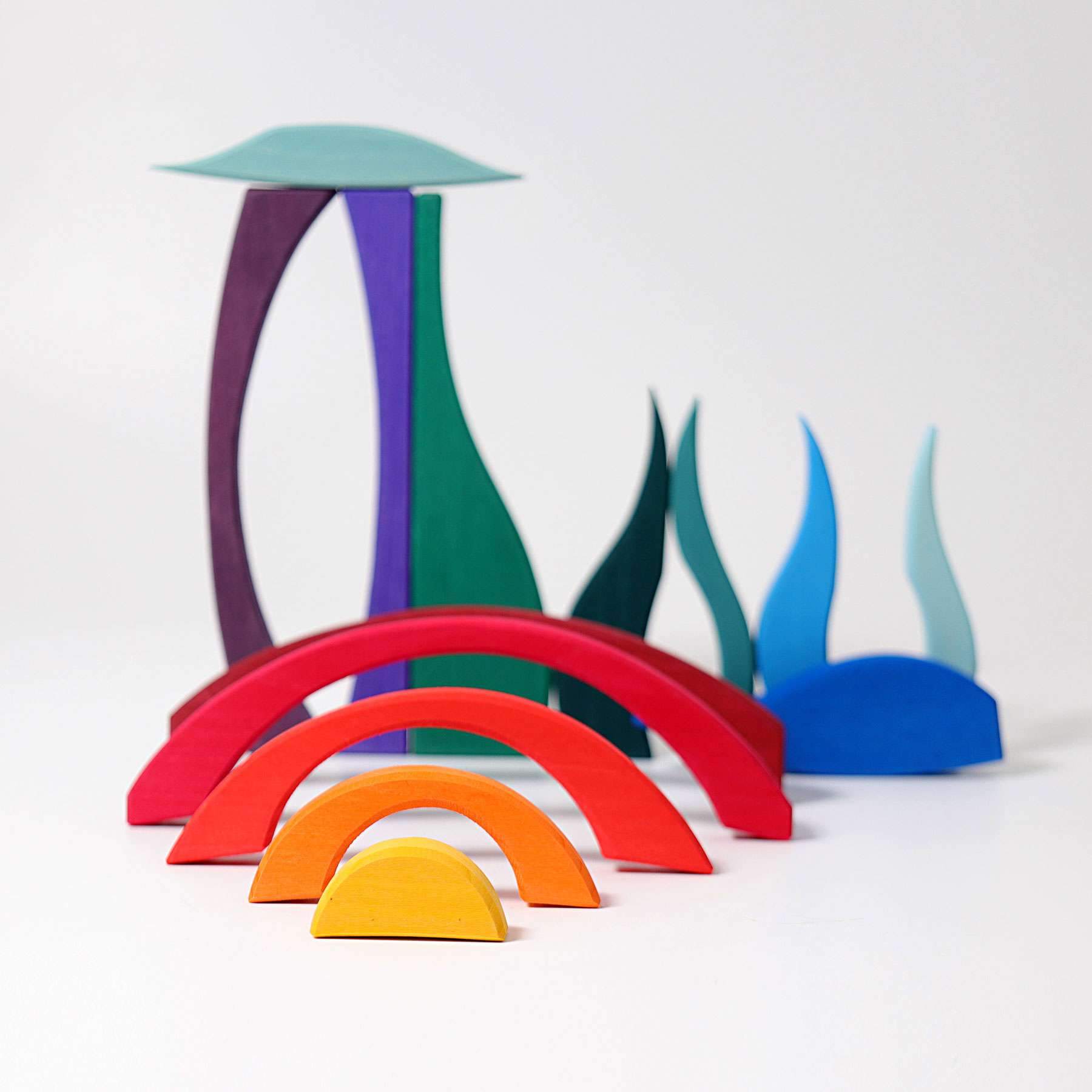 The organic, curved shapes inspire children to develop fine motor skills and spatial thinking skills through block play.