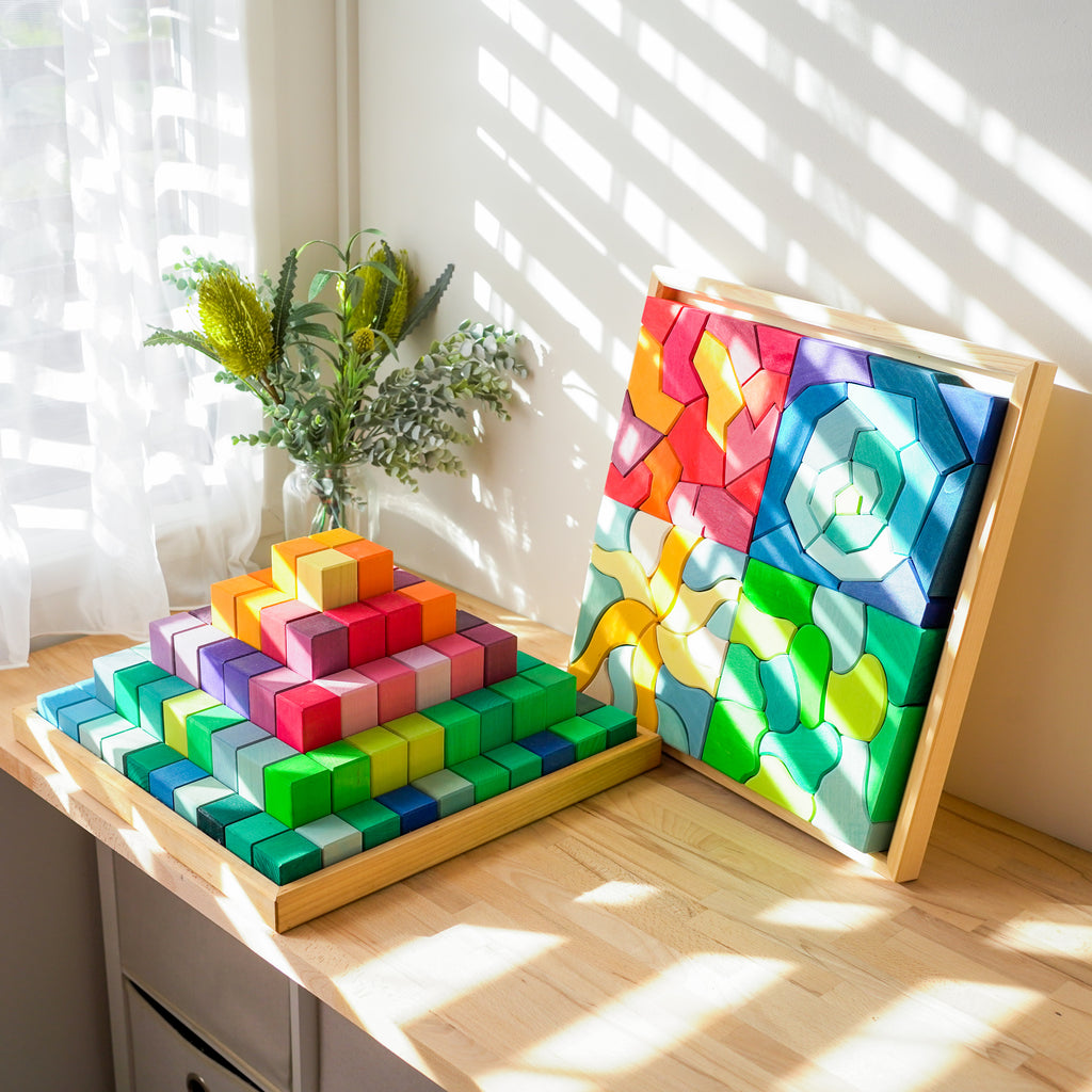 We absolutely LOVE our Large Stepped Pyramid. The texture of the blocks is quite grippy so great for little ones to build with. The colours are beautiful. There's something therapeutic about packing them back into the tray in the pyramid shape.