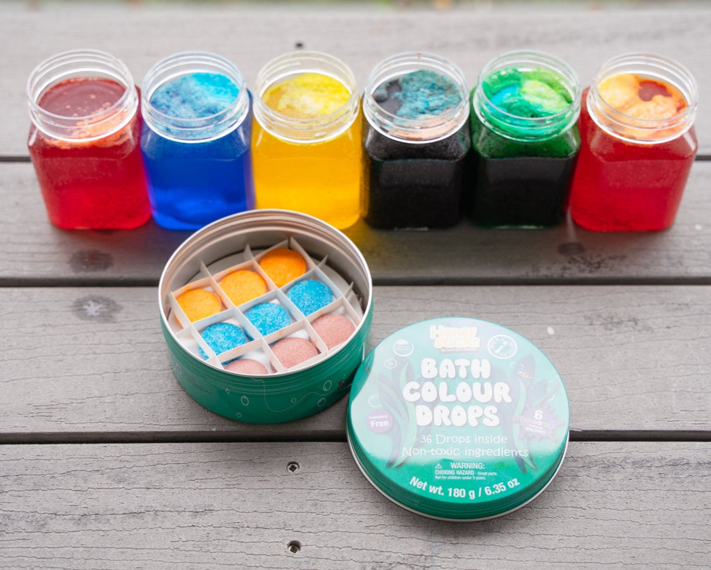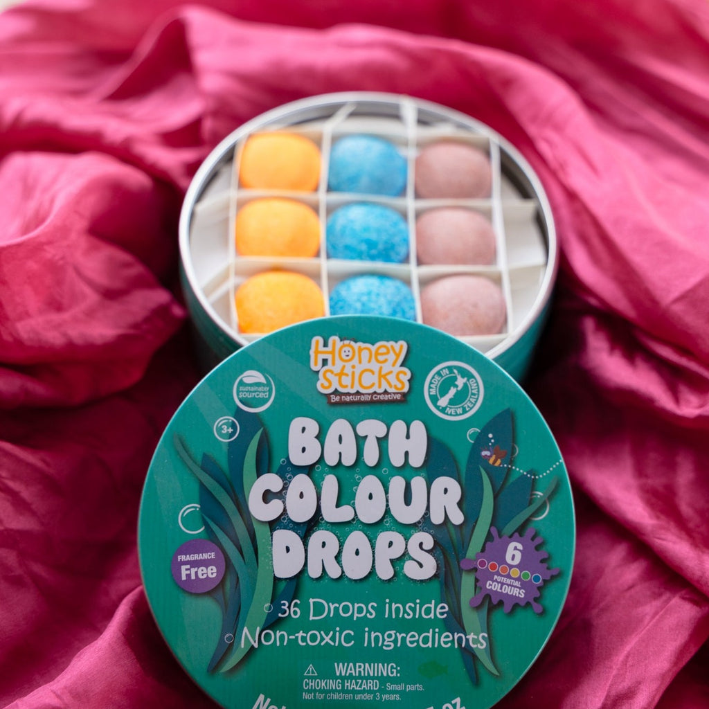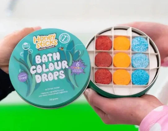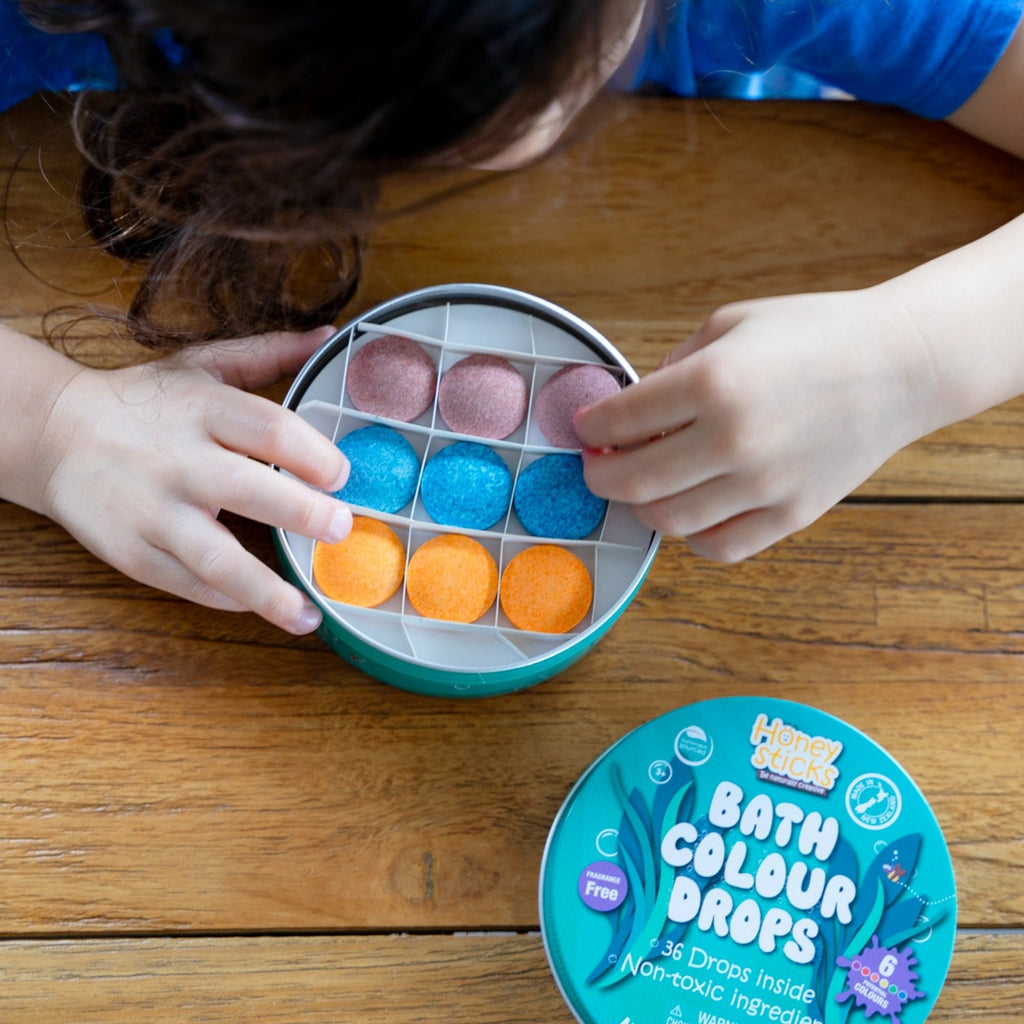 Kids will love honeysticks bath colour tablets - non toxic bathtub colour drops made with natural, food grade ingredients that are free from fragrances.