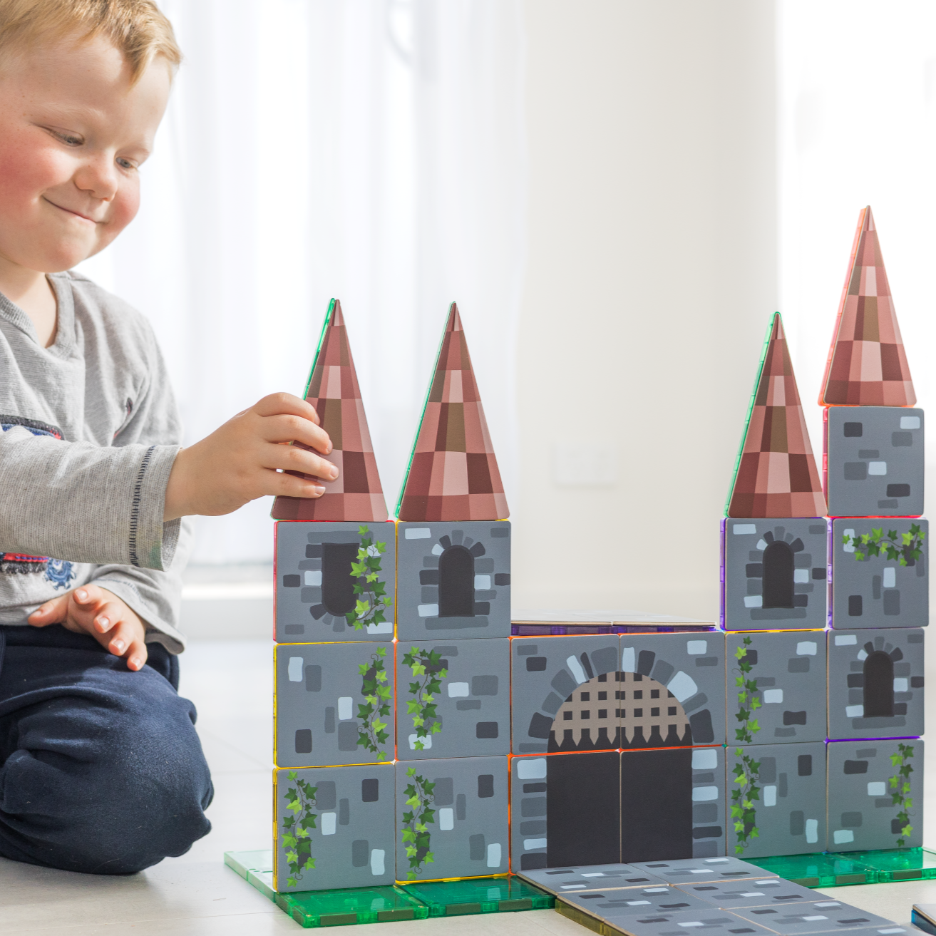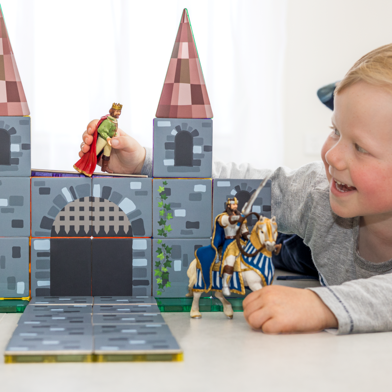 Expand your kingdom's adventures with our enchanting Magnetic Tile Topper - 40-piece Castle Pack!