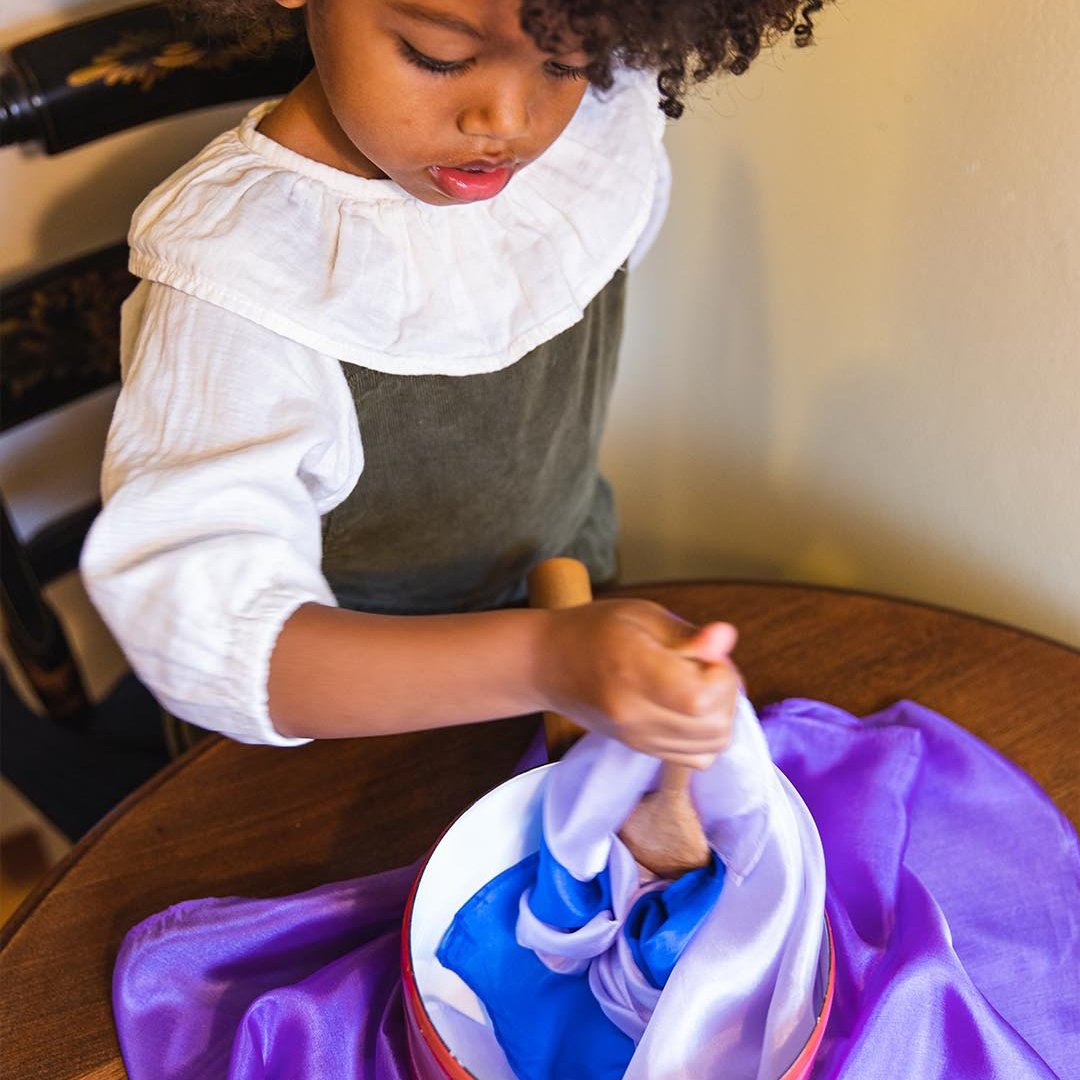 Children have always used found items to create toys and props for imaginative play. Here are some ways we see little ones play with the mini silks: