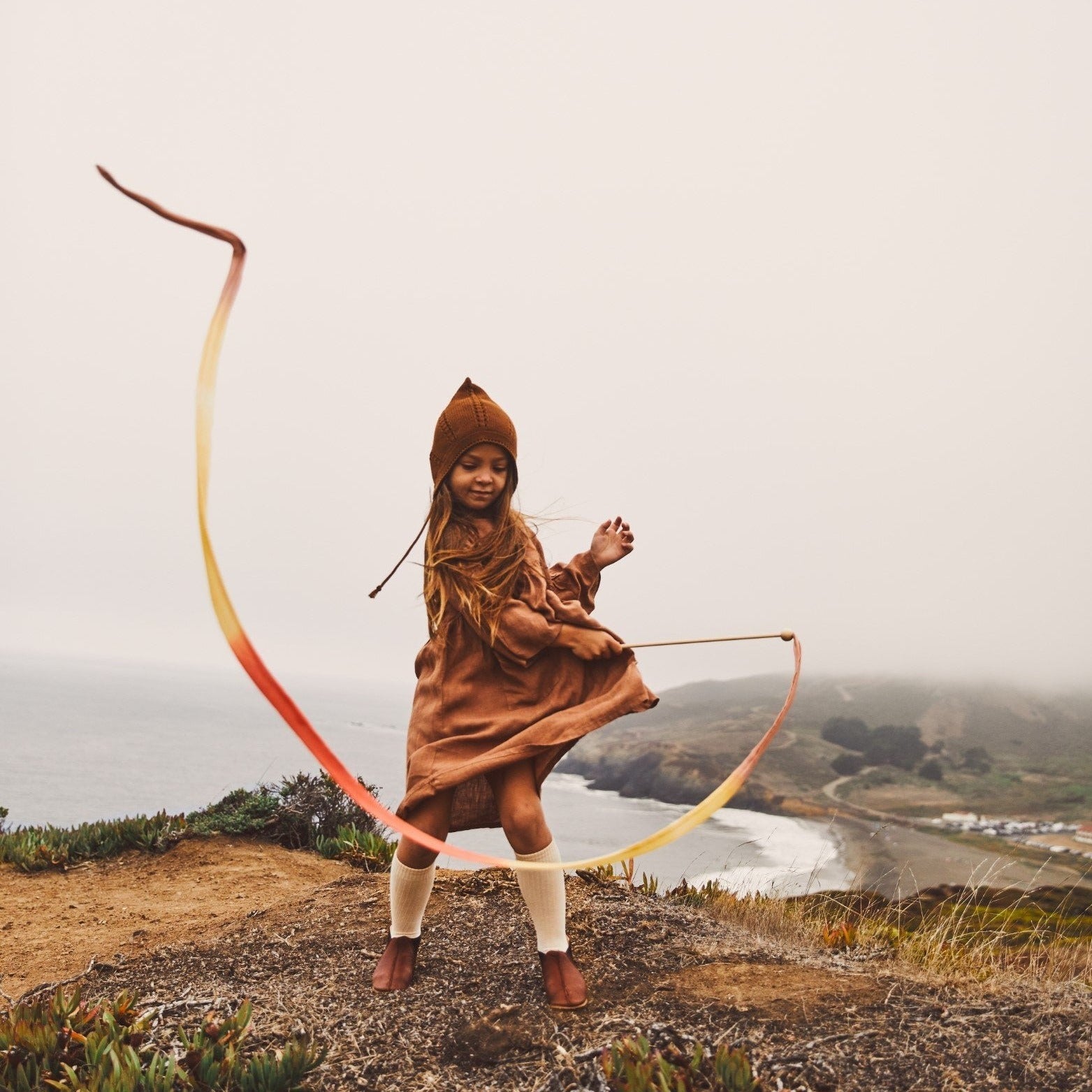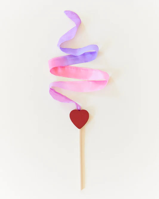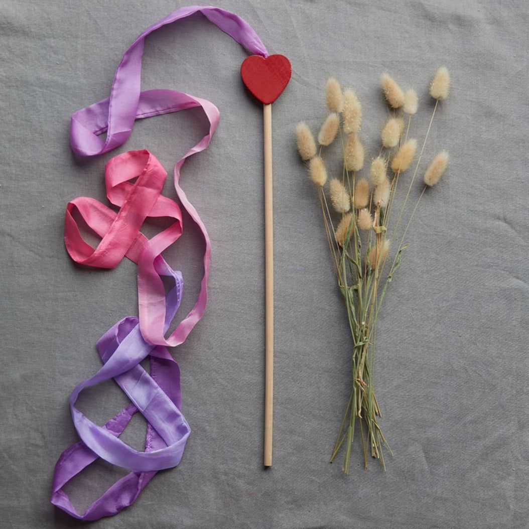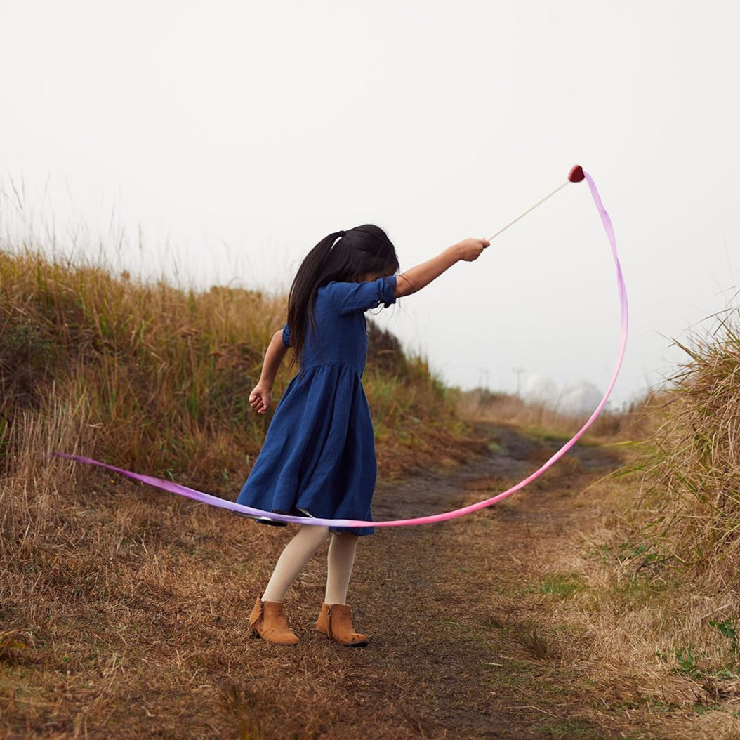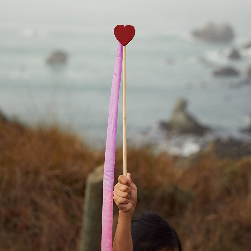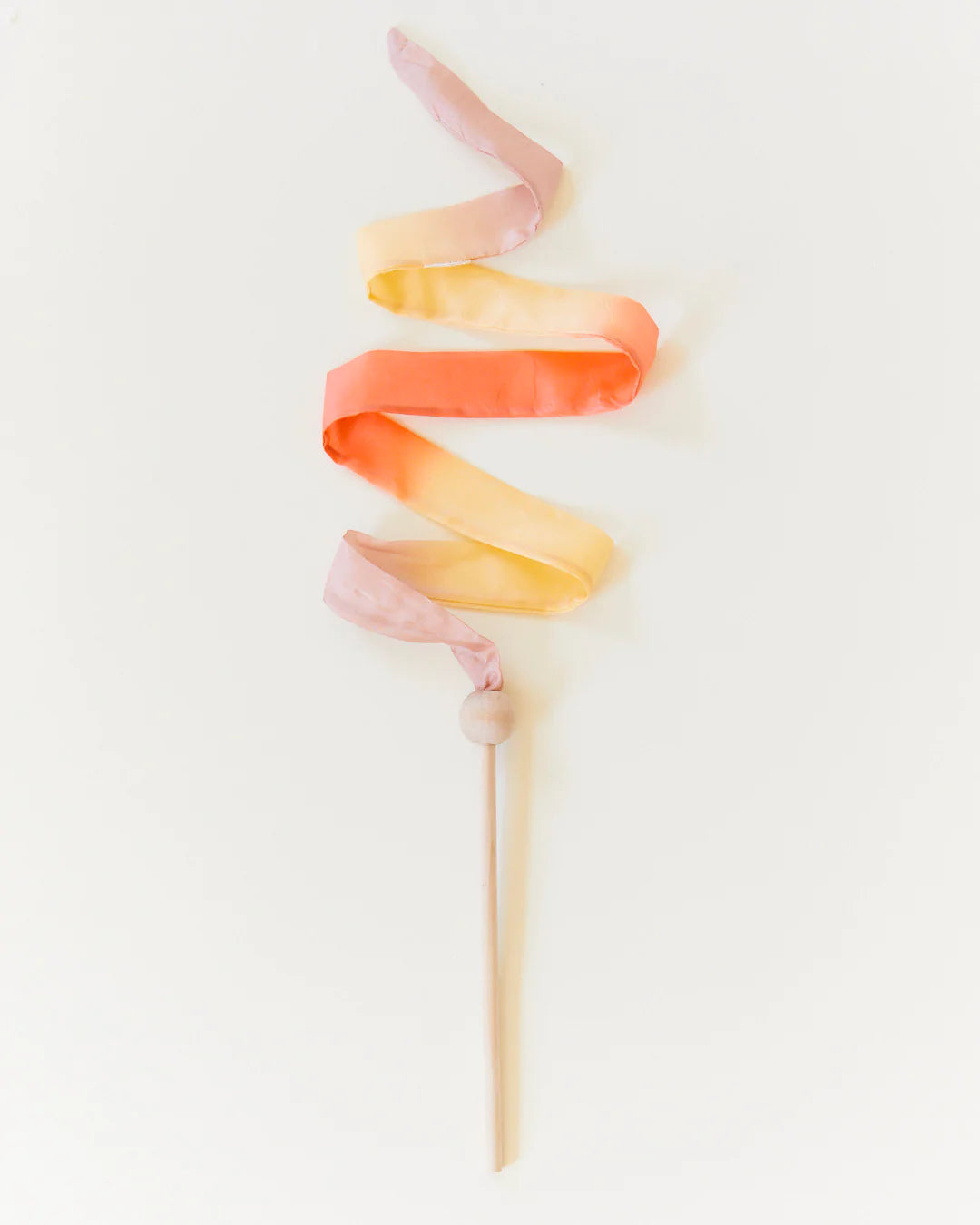 Our Silk Streamers from Sarah's Silks feature a wooden wand with shimmering silk, topped with a decorative wooden bead.