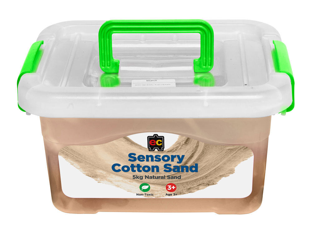 Playing with Cotton Sand is a sensory experience and helps children develop hand-eye coordination and fine motor skills, making this a great activity for the classroom and home. Large, re-usable tubs for easy storage.
