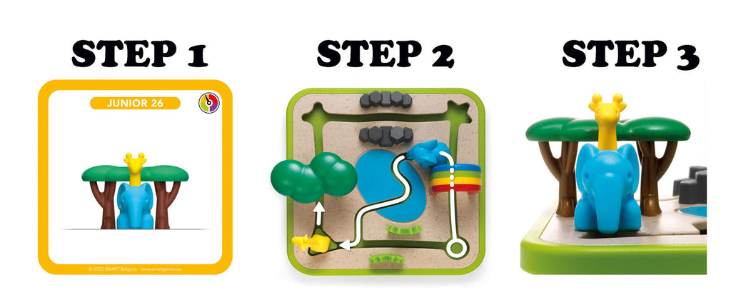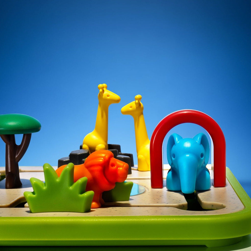 Don’t forget the lion doesn’t like water, the elephant can’t climb over the rocks and the giraffes are too tall to fit underneath the trees.