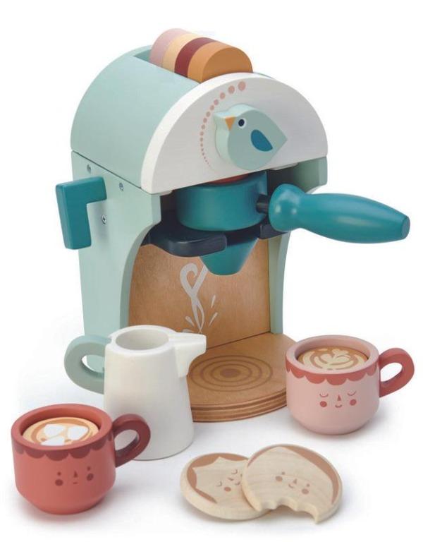 An adorable bird's nest themed cappuccino machine with accessories. The set includes: