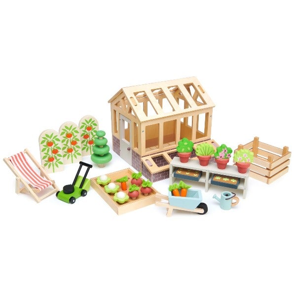 This adorable playset is perfect for children you love nature and playing in the garden. A traditional plywood greenhouse that has an opening door and 2 removable roof panels. The rest of the clever design includes:
