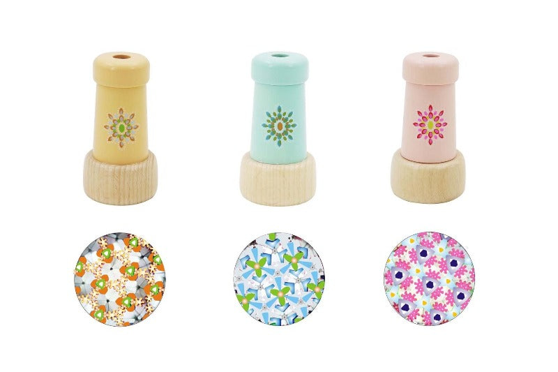 Unlock a world of mesmerizing patterns with the Wooden Mini Kaleidoscope. This pocket-sized wonder captivates curious minds as they peer through and watch colours and shapes transform. Crafted for ages 18 months and up, it's a portable source of endless fascination, sparking imagination and visual exploration wherever you go.