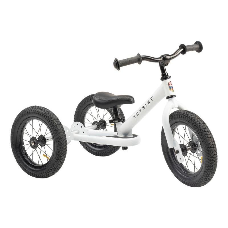 The first 2-in-1 tricycle balance bike made from steel makes learning to ride fun! The Trybike Steel teaches children to ride from 18 months of age. The first setting is the low tricycle mode which offers children lots of support. You can easily convert the tricycle to a balance bike so that the next stage of riding starts. With the unique footrest, children learn balance and consequently learn to ride a pedal bike without ever using training wheels.