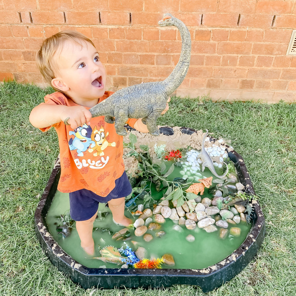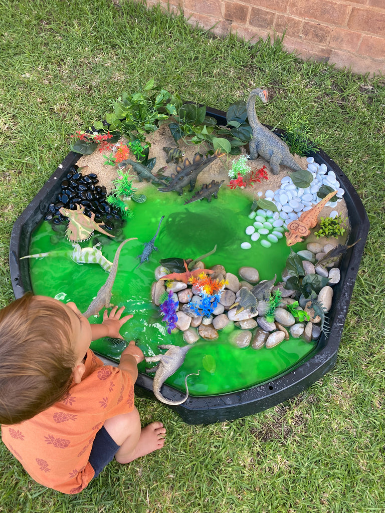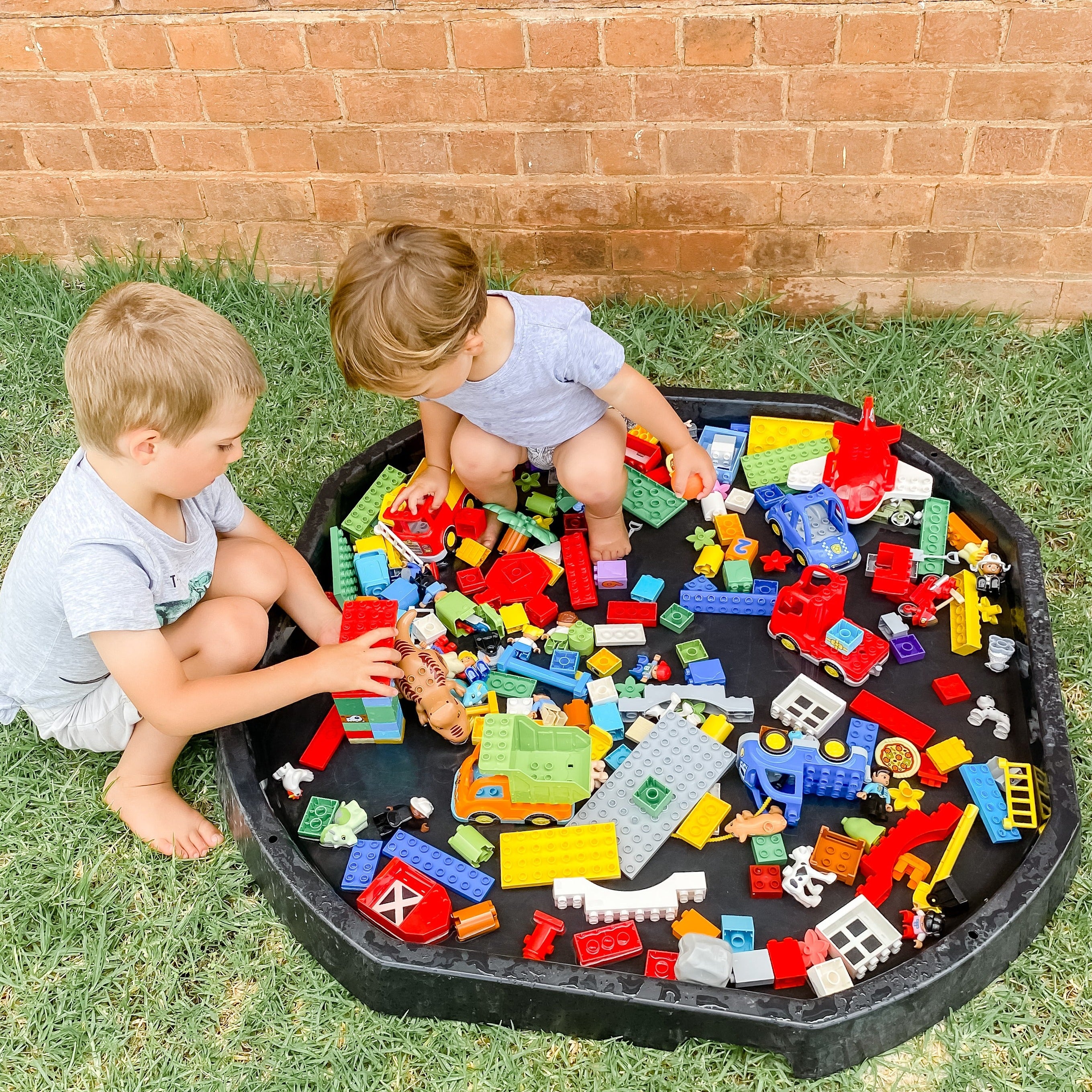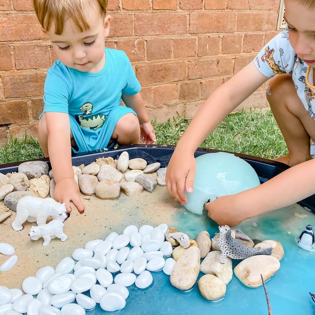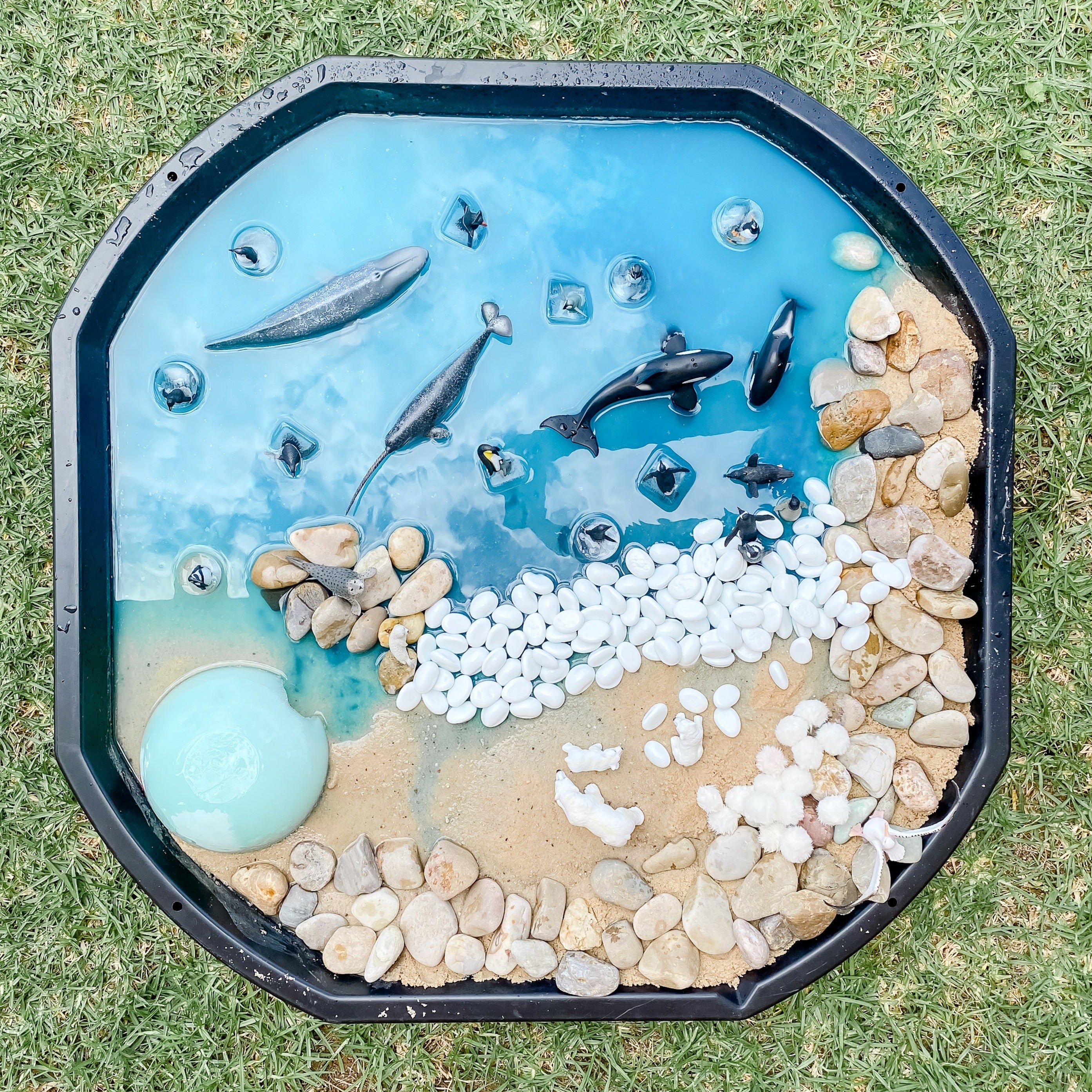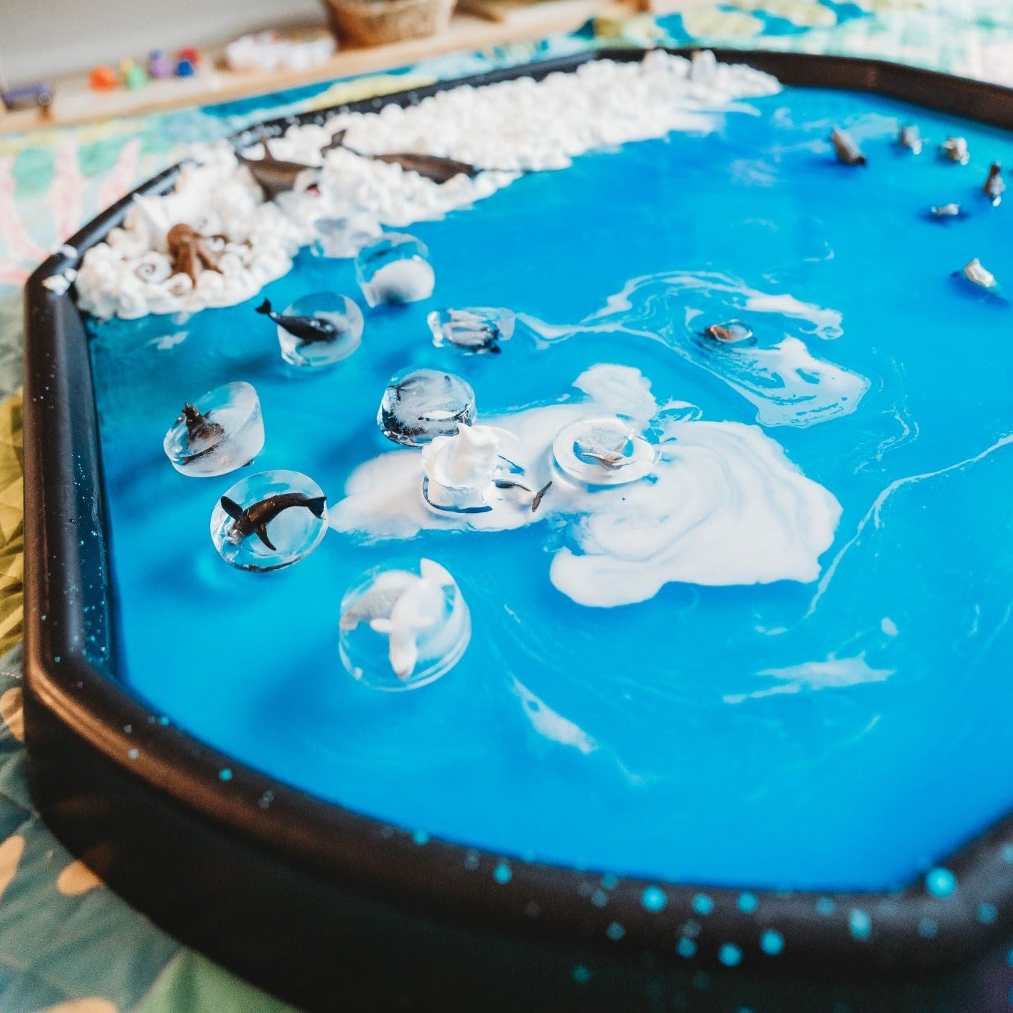 These large, shallow trays allow you to set up paints, messy play, small world play or sensory play whilst keeping any mess inside the shallow edges of the tray. The size of the tray allows multiple kids to play and it can be set up inside or outside.