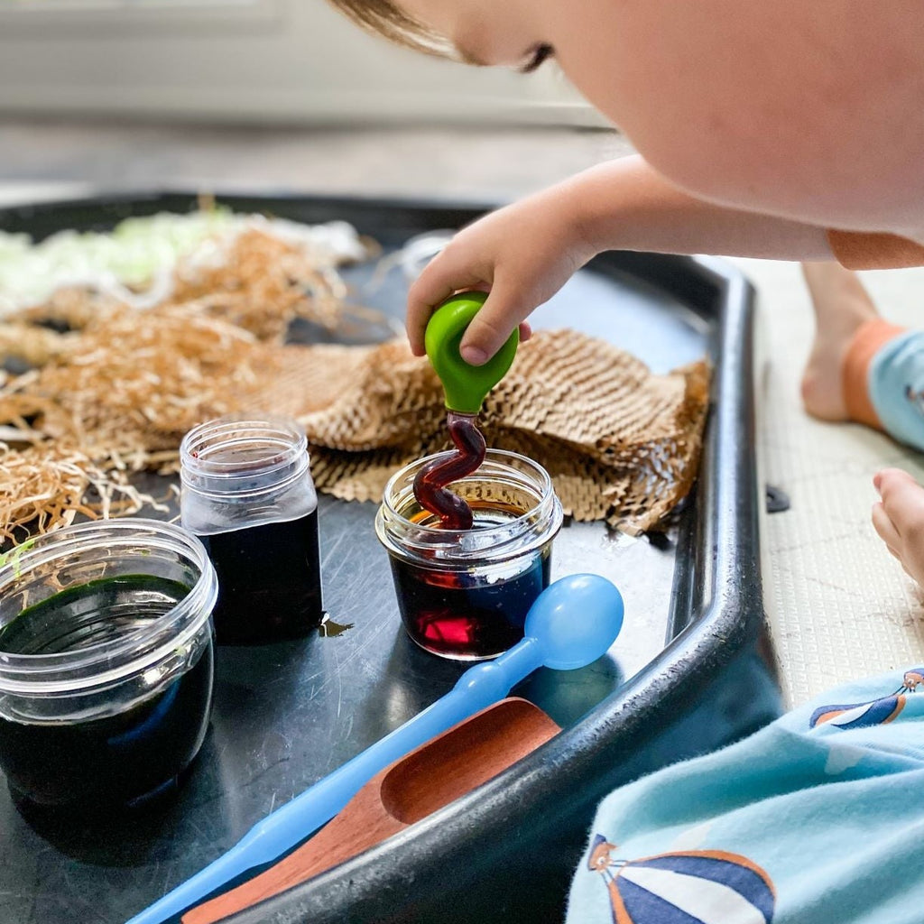 We are so thrilled to have our hands on these awesome play trays that are perfect for an invitation to play and learn.
