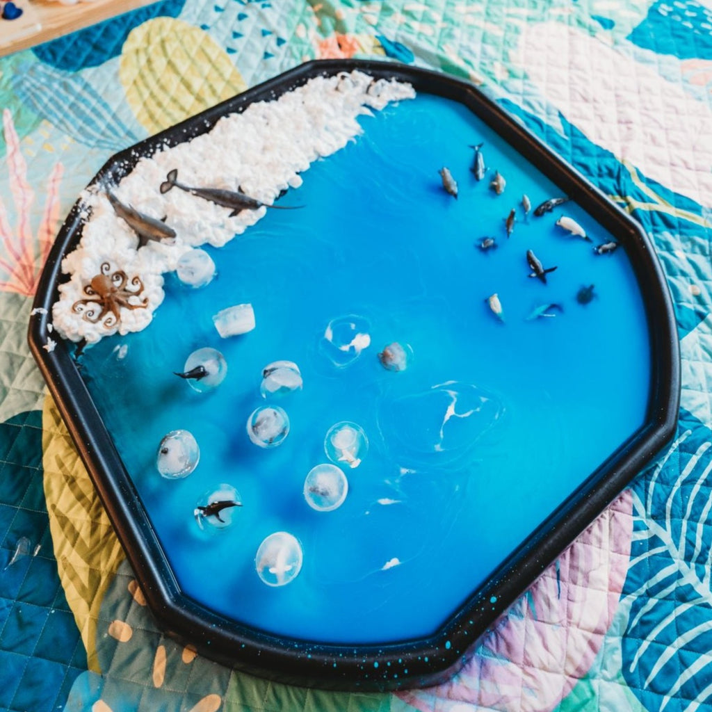 - Large heavy-duty plastic tray. It's lightweight & is octagonal shaped with raised sides which make it perfect for containing messy play.